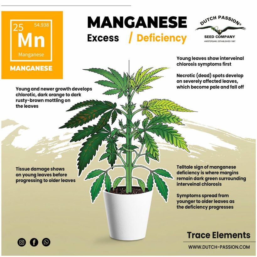 Manganese (‘Mn’) is an immobile micronutrient. It helps with several important cell functions including nitrogen use, respiration and photosynthesis. Root cell growth is aided by Manganese, which also protects roots from less useful/bad microbes. It’s unusual to see genuine cases of Manganese deficiency. Often it is related to excess Iron or high pH.