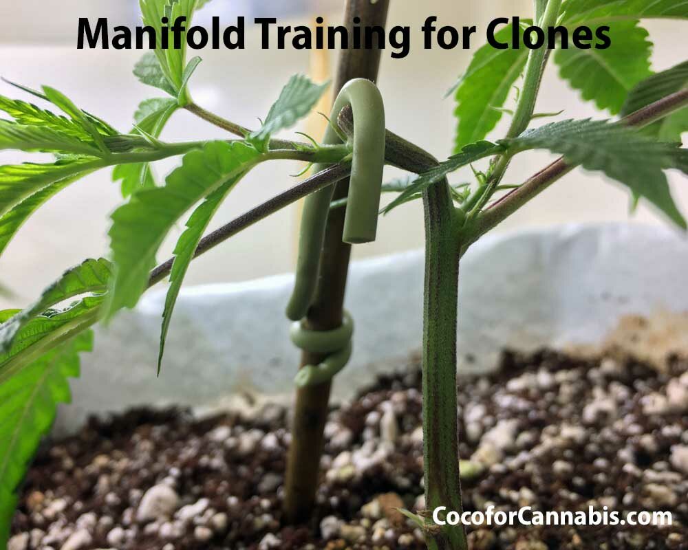 In most other ways, manifold training for clones is just like manifold training for seedlings. For both types of plants, once the basic structure is complete we shift our attention to pruning and training to spread the plant out and promote an even canopy.