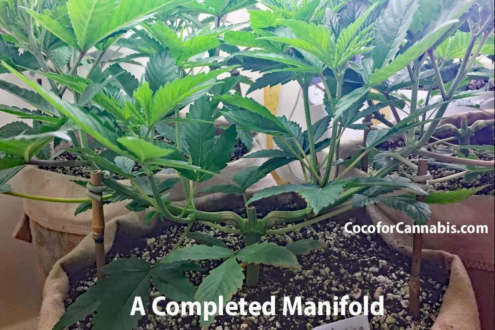 Once you have eight main branches, the manifold structure is complete. The plants are usually about four to six weeks old and entering the late vegetation stage. This is an exciting time for cannabis manifolds because the growth will explode over the next several weeks.